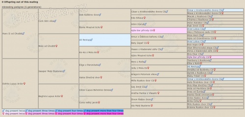 Dahlia je krásná temperamentní slovenská fena se zajímavým rodokmenem, kvalitním pigmentem. Účastnila se klubové a speciální výstavy, obě s hodnocením výborná.Je sportovně založená, má za sebou účast na několika kratších dogtrecích i na projektu "1000mil pro jeden cíl". Běhá canicross nebo podél kola, koloběžky.