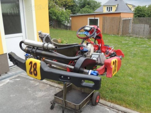 Prodám motokáru, podvozek BIREL R31-SV MTS, téměř nejetý - cca. 4 hod., žádný závod, motor KF3, Mychron3 Extreme, vozík, mnoho náhradních dílů /rozety, poloosy, boční plasty na podvozek, přední spoilery, náboje, disky, nepoužité brzdové destičky, sedačky -různé velikosti a mnoho dalších dílů/ + mnoho příslušenství, zejména zouváky pneu -mechanický pákový + nůžkový, kombinézy klasické + déšť, boty, rukavice, helmy ARAI, BELL. Cena dohodou, levně, možno i jednotlivě, foto možno zaslat e-mailem.