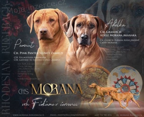 Po úžasných rodičích. Narozeni 12. 7. 2025, k odběru po 8. 9. 2025. Předpoklad krásného pigmentu, milých povah, výstavních i pracovních předpokladů a neskutečně úžasných rodinných psů. Samozřejmostí je plný chovatelský servis, výbavička, smlouva. Pupíčci půjdou do nových rodin plně socializovaní, očkování, odčervení, čipovaní a samozřejmě s pet pasem. V případě zájmu nás kontaktujte. Preferujeme minimálně jednu dvě návštěvy před odběrem. Nezávazné socializační a mazlící návštěvy vítány. http://www.morana-ridgeback.cz